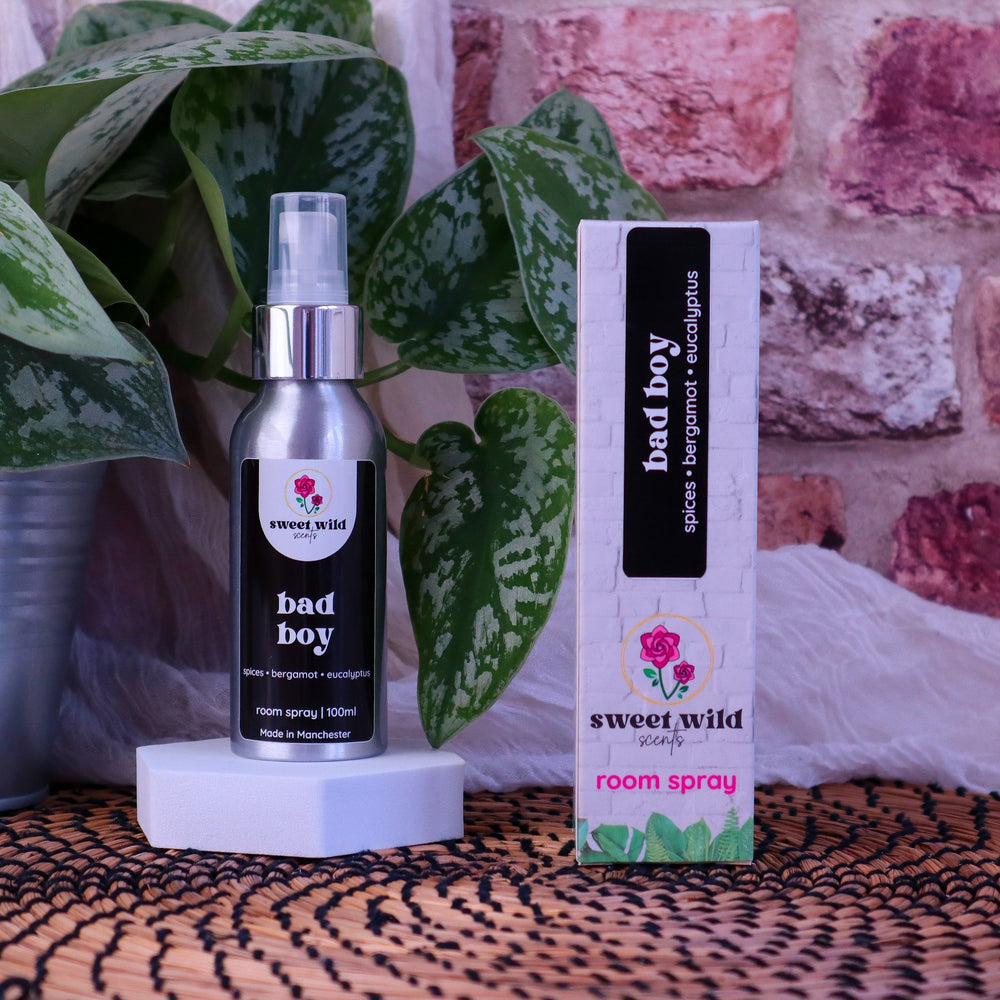 Bad Boy by Sweet Wild Scents is a bold and magnetic room spray designed to leave a lasting impression. Zesty bergamot and eucalyptus open the fragrance with a sharp, clean twist, while a heart of warming spices and soft lavender lingers beautifully. It finishes on a rich, smoky base of woods and amber—deep, grounded, unforgettable.