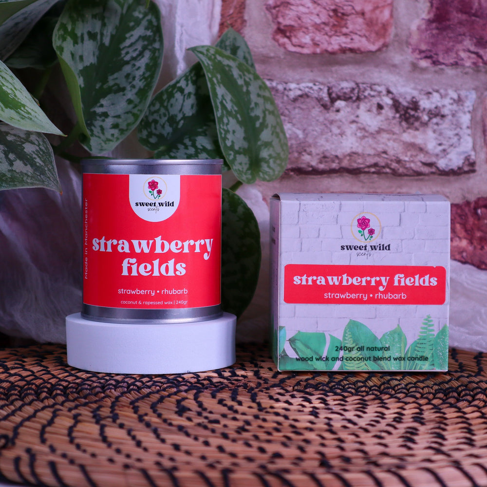 Strawberry Fields by Sweet Wild Scents is a joyful; fruit-forward candle that captures the carefree feeling of sunny days and laughter in the air. It opens with a tart burst of rhubarb and pink grapefruit; then blooms into a juicy heart of strawberry; raspberry; apple; and plum. A soft base of creamy vanilla; cedar; and gentle musk brings warmth and balance to the playful blend.